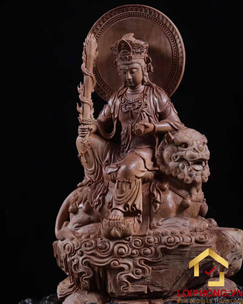Văn Thù Bồ Tát thường ngồi trên lưng sư tử xanh - hình ảnh tượng trưng cho sức mạnh của trí tuệ. Sư tử vốn là chúa sơn lâm, chúa của rừng xanh nên có đầy đủ uy lực mà những loài thú khác không có.