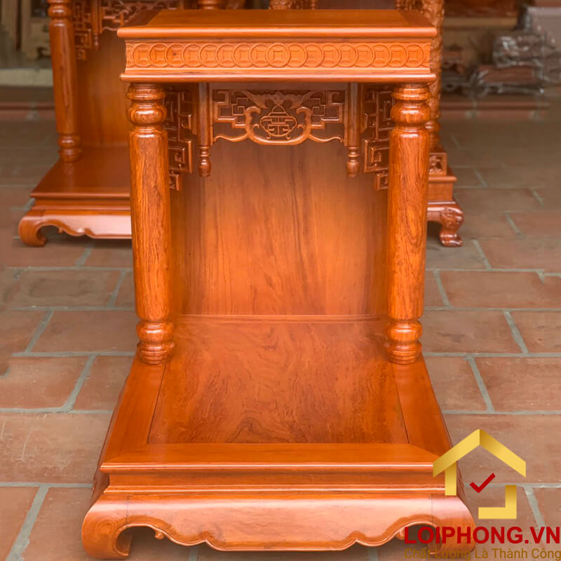 - Bàn Thờ Ông Địa BTOĐ 04 làm bằng chất liệu gỗ hương đá cao cấp đường nét sắc xảo và tinh tế vừa tăng sự sang trọng đồng thời thu hút tài lộc vượng khí