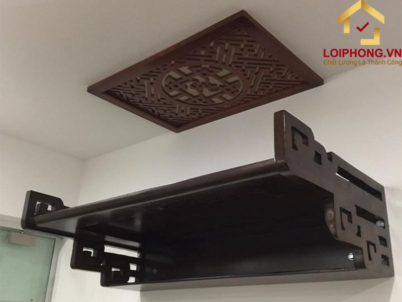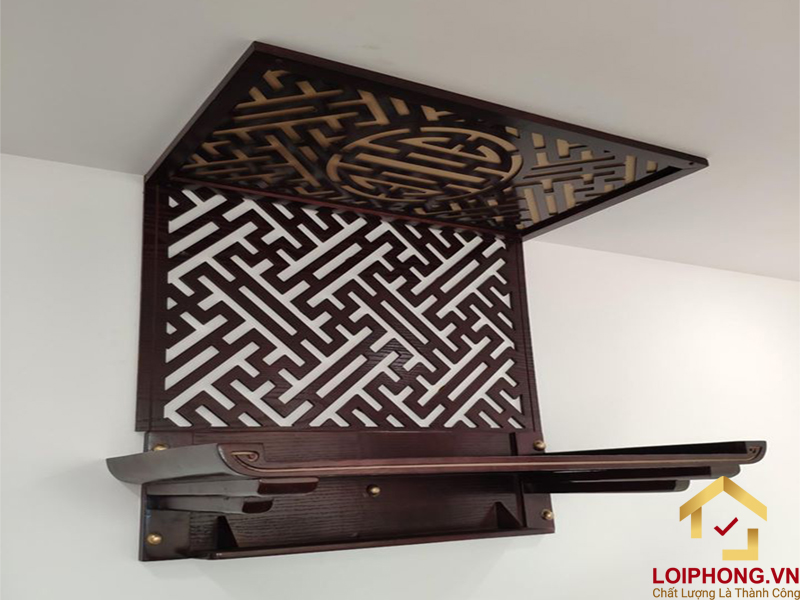 Một số mẫu thiết kế bàn thờ treo tường chân liền đục họa tiết tại Lôi Phong