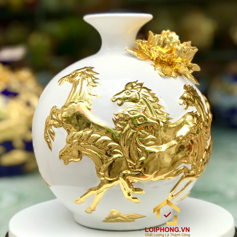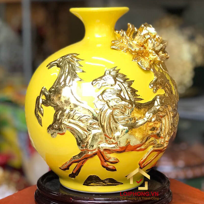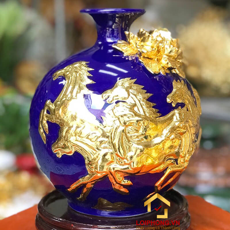 Bình hút tài lộc mã đáo thành công dát vàng cao 22 cm đường kính 19 cm