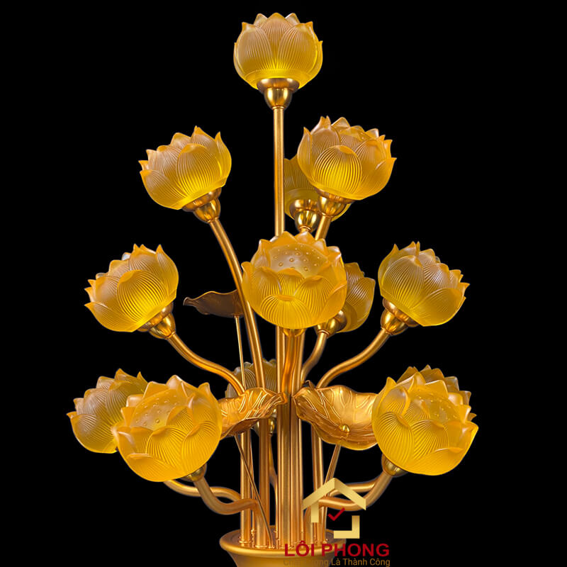 Đèn Thờ Hoa Sen 13 bông chớm nở bằng lưu ly cao cấp – Tinh Tế, Sang Trọng, Tôn Nghiêm