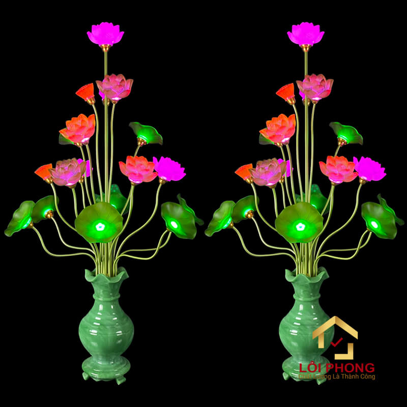 Đèn thờ Hoa Sen 19 bông bình ngọc tôn vinh vẻ đẹp tâm linh mang bình an đến gia đình