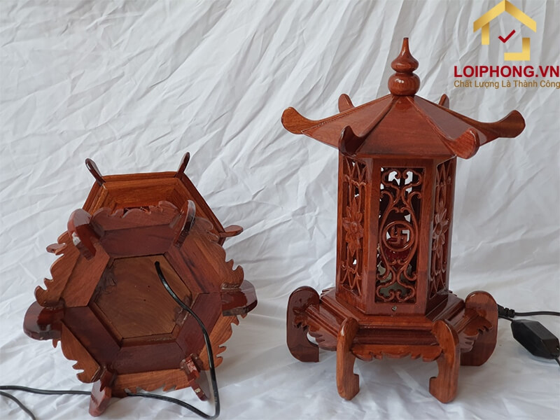 Đèn thờ gỗ lục giác với chất liệu gỗ hương
