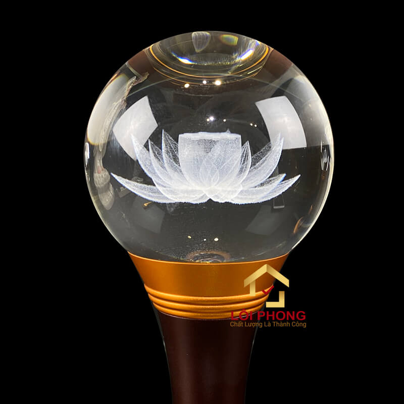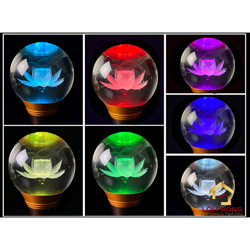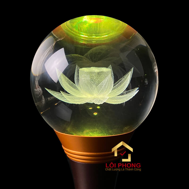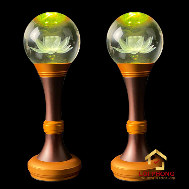 Đèn Thờ Pha Lê Khắc Hoa Sen 3D - Cao 25-80 cm