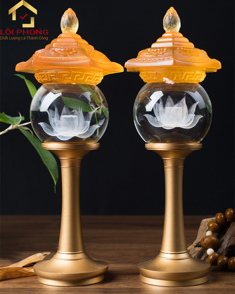 Mẫu đèn thờ hoa sen pha lê cúng Phật là một trong những mẫu mã mới nhất. Nhưng lại được ưa chuộng bởi đông đảo người dùng do vẻ đẹp thuần khiết và tính năng tiện lợi mà loại đèn này đem lại.
