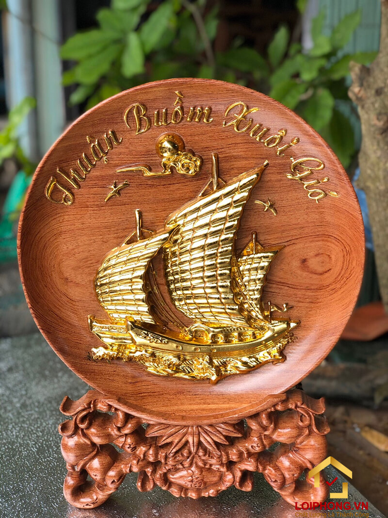 Sản phẩm có đường kính 35cm, chạm nổi hình ảnh con thuyền căng buồm đón gió ra khơi trong một ngày nắng đẹp. Sản phẩm không chỉ có giá trị về mặt thẩm mỹ khi đem lại sức sống căng tràn cho không gian nhà bạn mà còn giúp kích hoạt tài lộc, tăng thêm vận khí cho gia chủ. Đĩa thuận buồm xuôi gió có thể trưng bày tại phòng khách, phòng làm việc tại nhà hoặc văn phòng công ty.