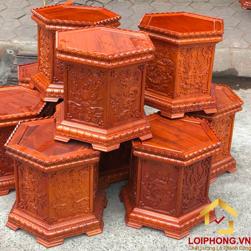 Đôn gỗ lục giác gỗ hương mang đậm nét truyền thống dân tộc