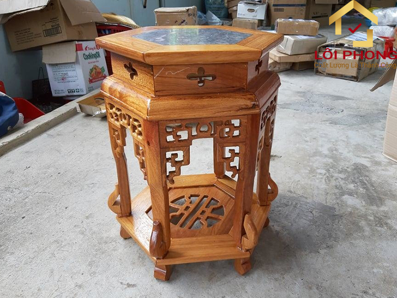 Đôn gỗ lục giác hoa văn tỉ mỉ