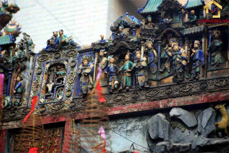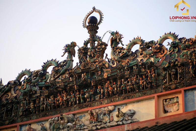 Phần mái được trang trí bằng nhiều bức tượng đa dạng hình thù và kích thước. Tất cả tạo nên sự hài hòa. Nếu ngắm kỹ tường đường nét bạn sẽ cảm nhận được sự tinh tế, kỳ công và có phần nể phục tài năng và tâm huyết của họ.