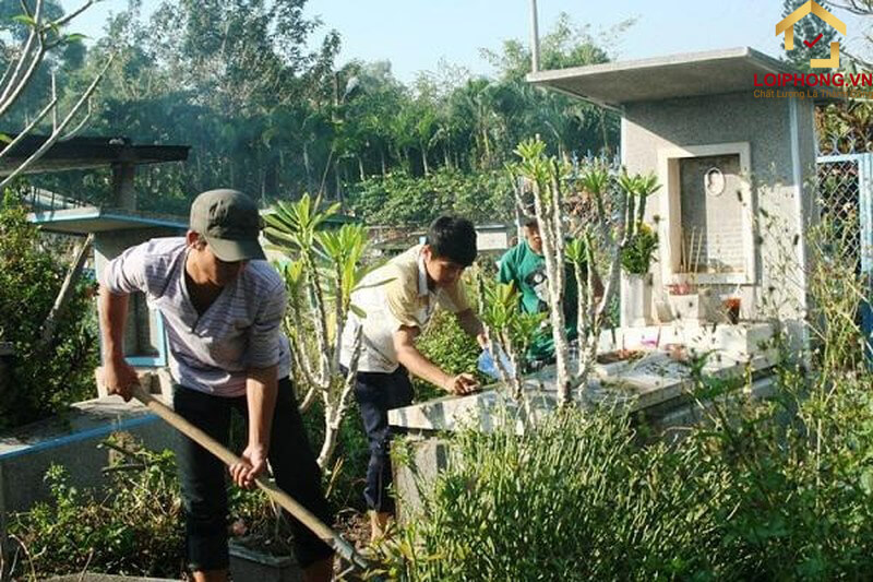 ● Thời gian chờ đợi hương tàn bạn sẽ thực hiện việc dọn dẹp và sửa sang xung quanh các mộ phần.