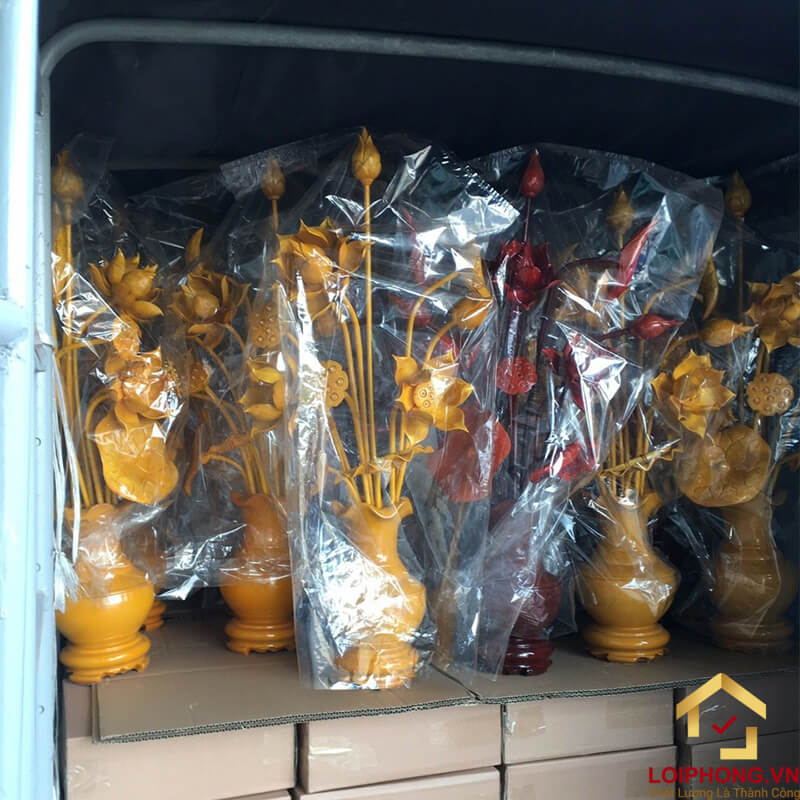 Trở bình hoa sen gỗ giao cho đại lý, cửa hàng