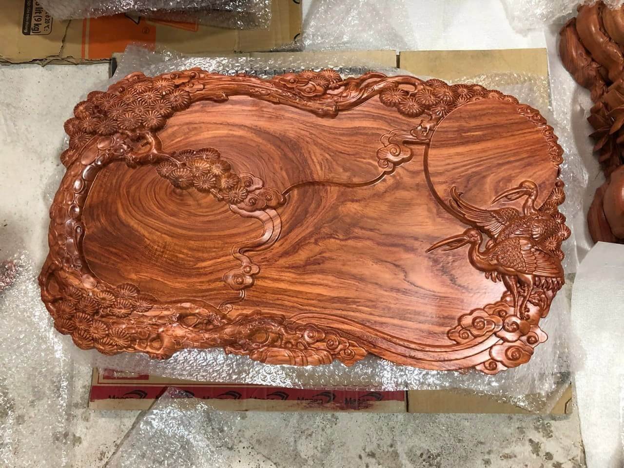 Khay trà gỗ nguyên khối chạm khắc hình kỳ nhông