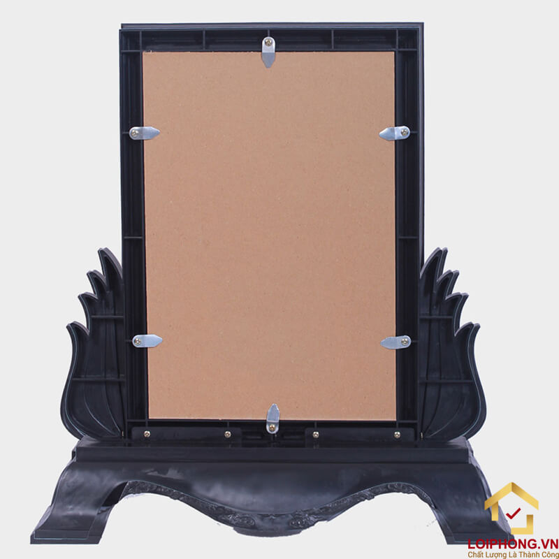 Dòng sản phẩm khung hình thờ nhựa này được trang trí thêm họa tiết hoa sen ở phần đế. Thiết kế trên chất liệu nhựa hiện đại, kết hợp cùng hoa văn trang trí hoa sen truyền thống luôn làm cho sản phẩm này trở nên thật nổi bật, phù hợp với mọi không gian thờ cúng hơn.