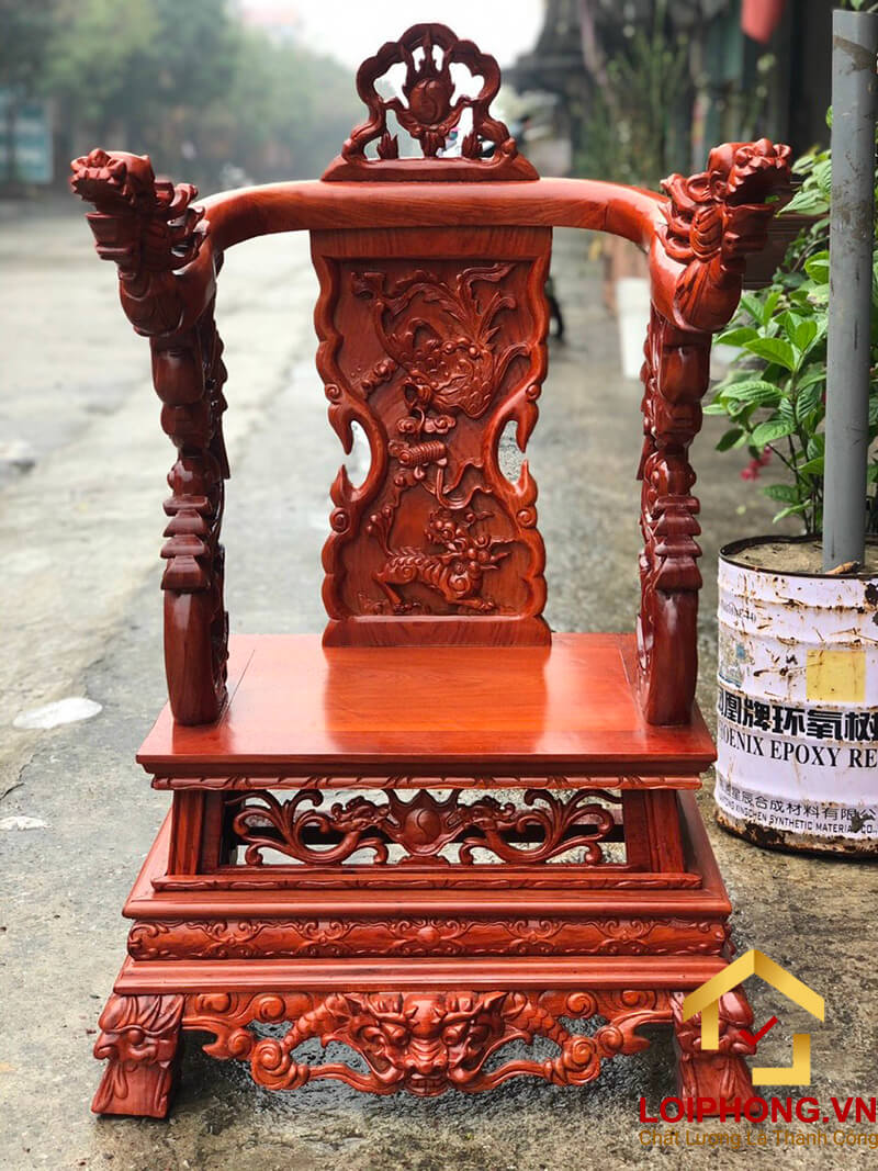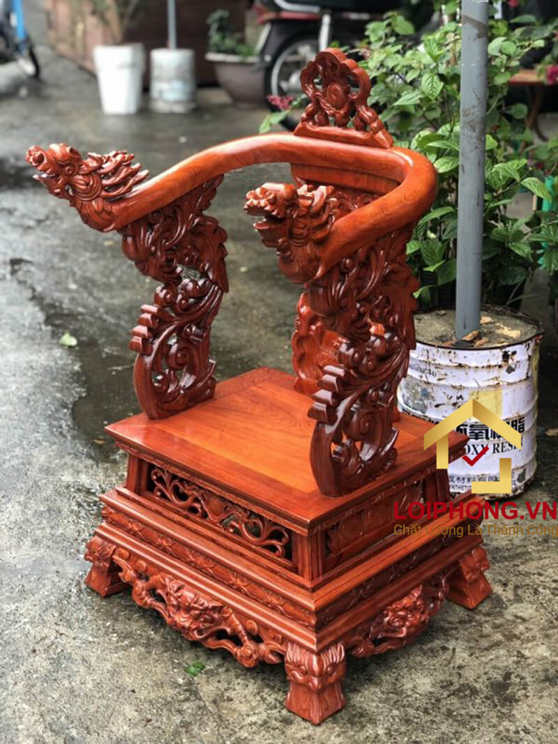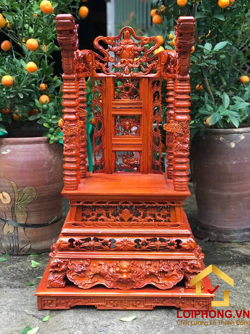 Gỗ Giáng Hương còn được gọi là gỗ Hương Đỏ với các ưu điểm vượt trội như thớ gỗ mịn, đường văn bắt mắt, gỗ chắc, đặc. Gỗ hương dùng làm ngai thờ sẽ mang vẻ đẹp trang nghiêm, đẳng cấp. Đồng thời với mùi hương nhẹ sản phẩm sẽ không bị mối mọt mà có độ bền vượt trội theo thời gian.