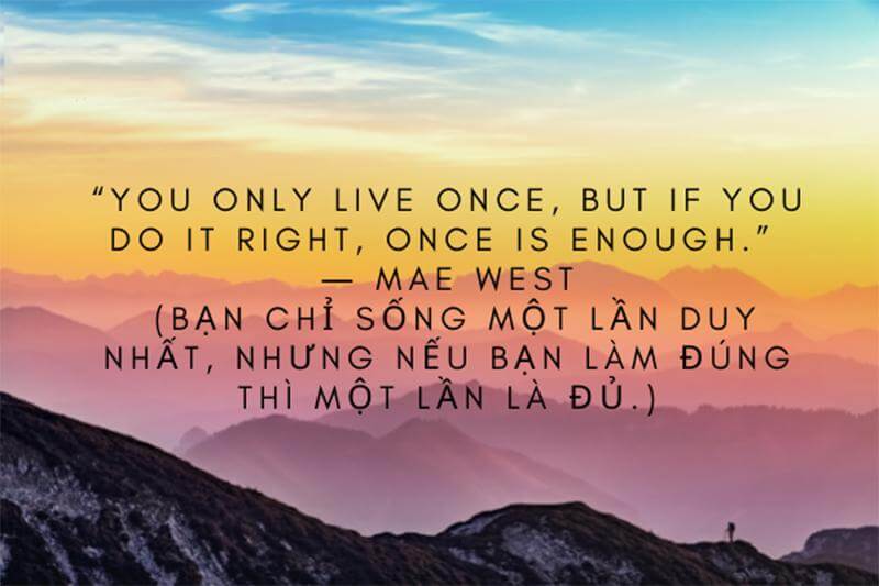 ● You only live once, but if you do it right, once is enough. - Mae West (Bạn chỉ sống một lần, nhưng nếu bạn làm đúng thì một lần là đủ.)