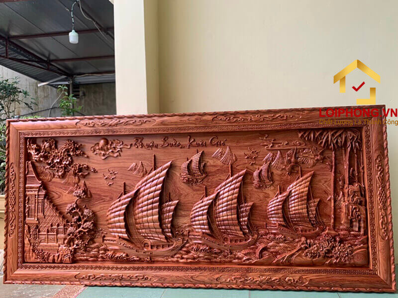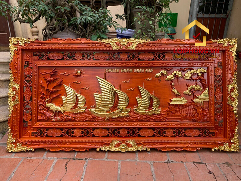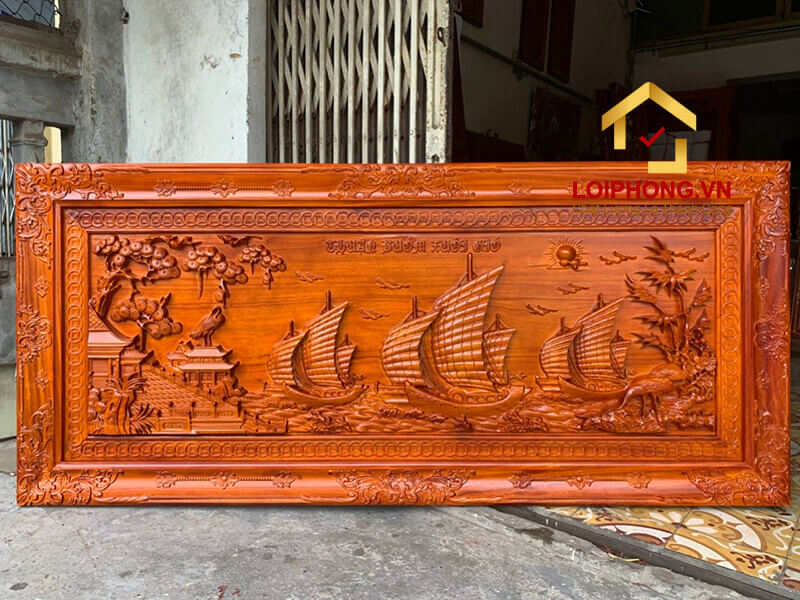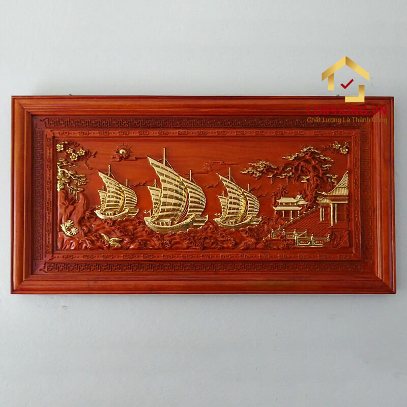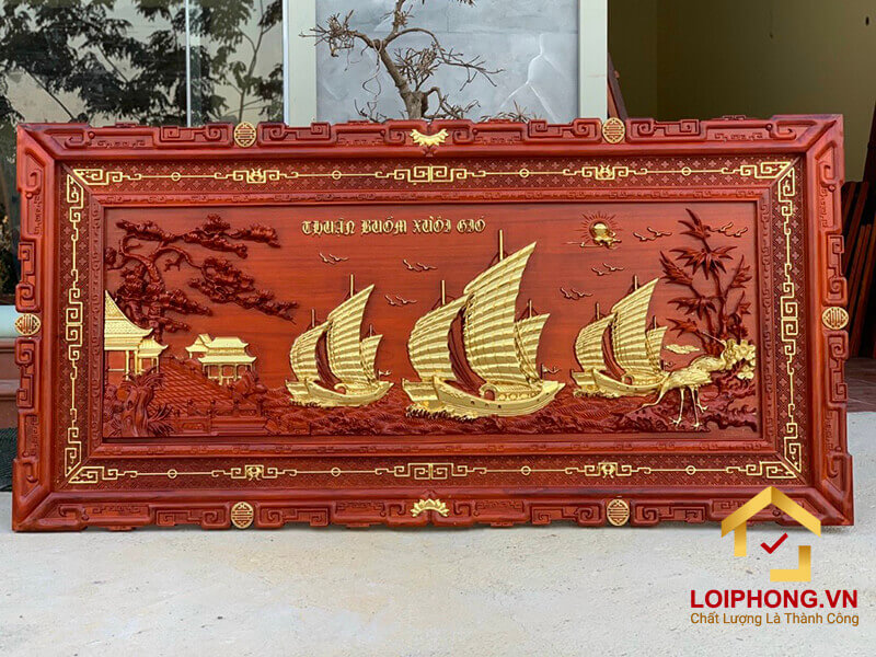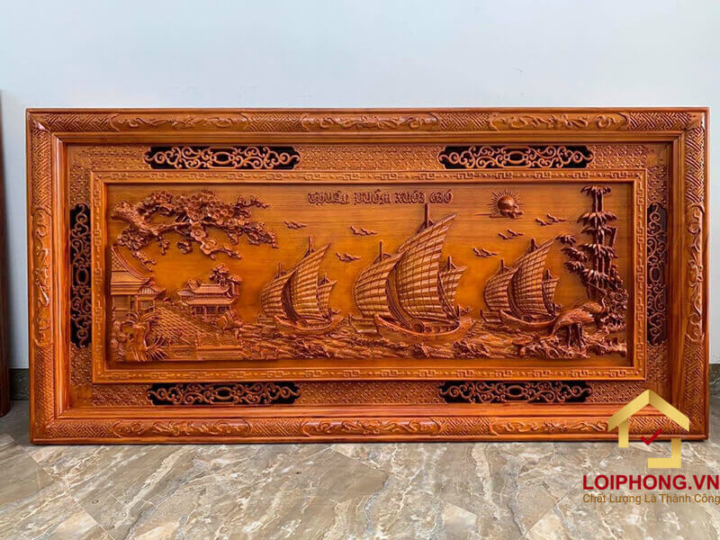 Tranh Thuận Buồm Xuôi Gió bằng gỗ được đục khắc kỹ xảo, tinh tế