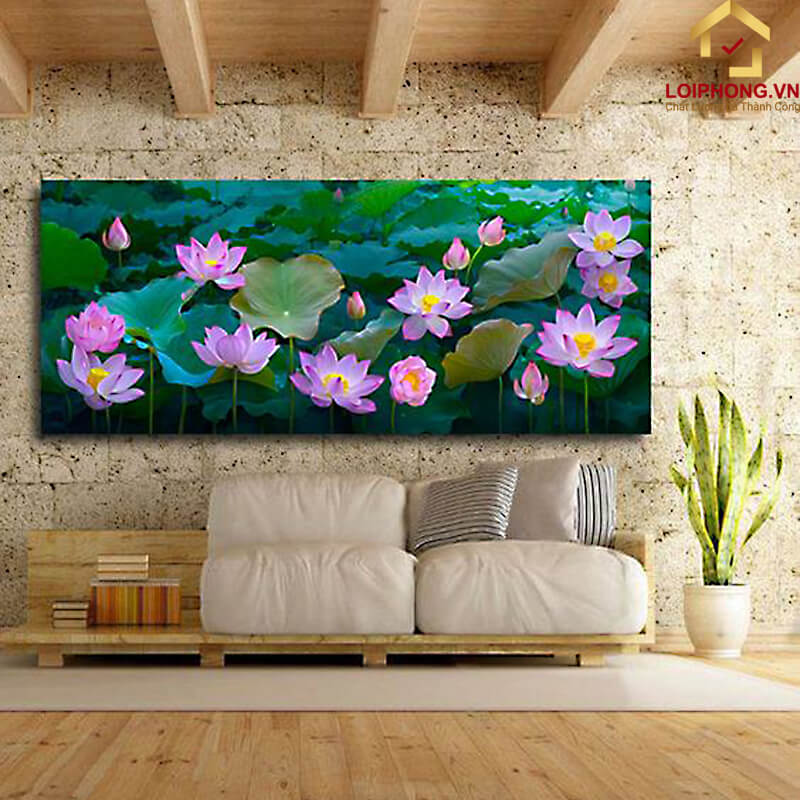 Đồng thời khi treo bức tranh có hình ảnh của hoa sen trong nhà còn giúp mang tới những điều tốt đẹp, bình yên và thể hiện được sự thanh thản ở trong tâm hồn. Qua đây góp phần giảm bớt đi mọi ưu phiền, căng thẳng và mệt mỏi ở trong cuộc sống.