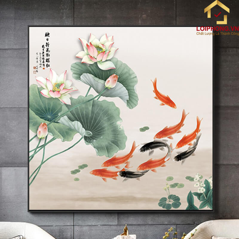 Bạn thường nhìn thấy các bức tranh cá chép hoa sen với hình ảnh cá chép hoa sen đơn, tranh đôi cá vờn trăng dưới đầm sen,... Dù là hình ảnh nào đi chăng nữa cũng tạo nên ấn tượng cực kỳ mạnh mẽ đối với người xem.