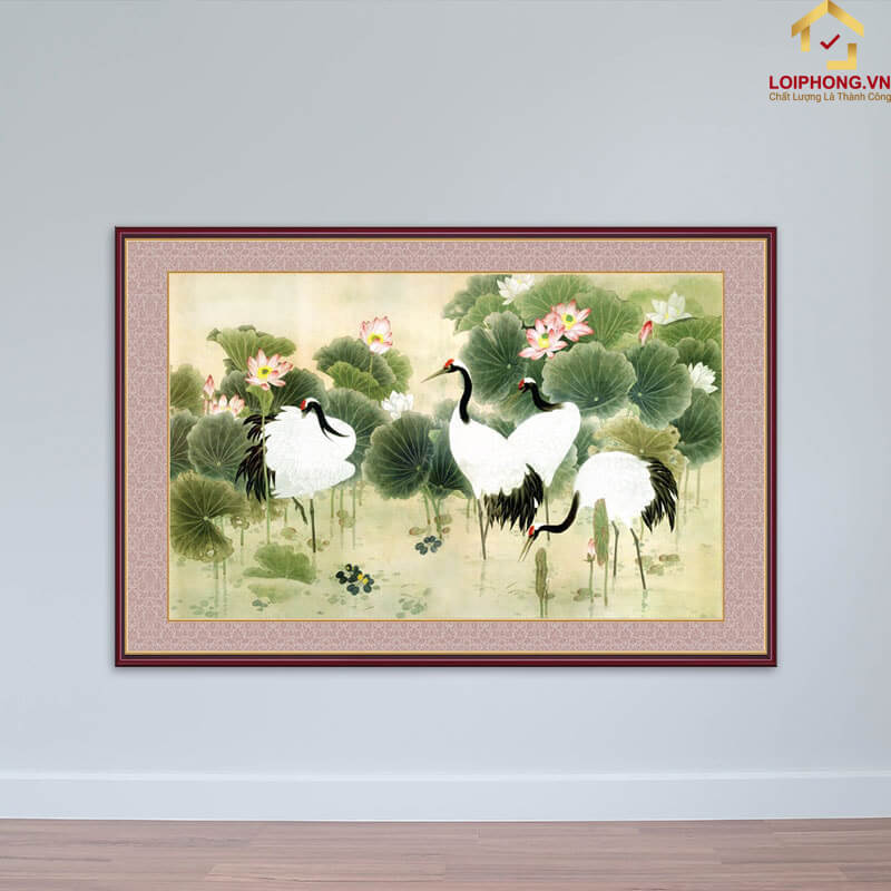 Những bức tranh đàn hạc dưới đầm sen tượng trưng cho sự thanh cao, vẻ đẹp trong sáng, thuần khiết. Cùng với đó là hình ảnh của chim hạc giúp cho bức tranh ngày càng khẳng định được chân lý về mặt thẩm mỹ. Sự kết hợp hoàn hảo của hai hình ảnh này đã giúp thu hút được sự chú ý của rất đông người xem.