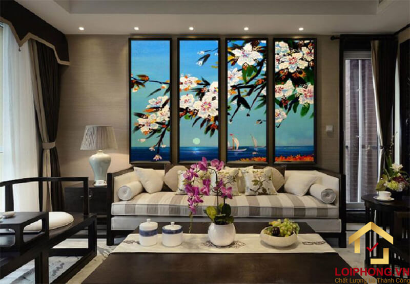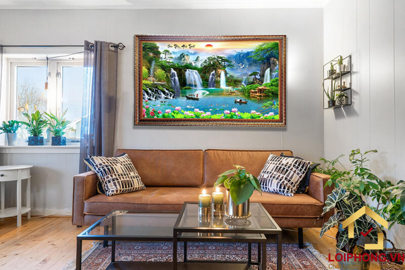 ● Tranh treo phòng khách: Nên lựa chọn tranh phong thủy, tranh phong cảnh thiên nhiên hoặc bộ tranh với nhiều kích thước khác nhau theo một chủ đề nhất định… Với chủ đề đẹp sẽ giúp cho phòng khách trở nên ấn tượng và tinh tế hơn.