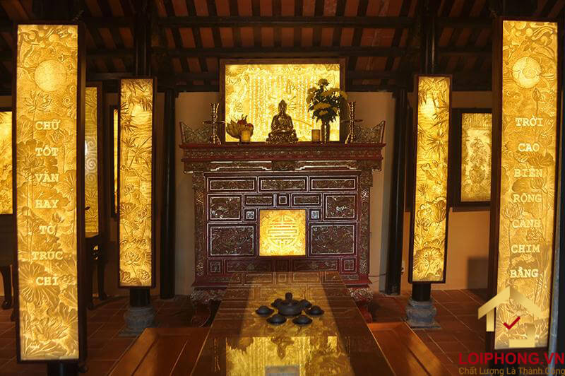 ● Trang trí không gian phòng thờ: Là sự kết hợp hoàn hảo trong công trình kiến trúc tâm linh. Tạo nên không gian thờ cúng linh thiêng, hợp phong thủy.