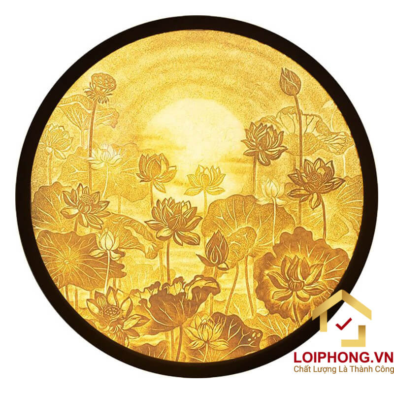 Mẫu tranh trúc chỉ số 05: Tranh trúc chỉ tròn hoa sen
