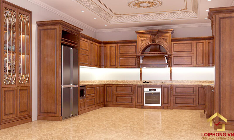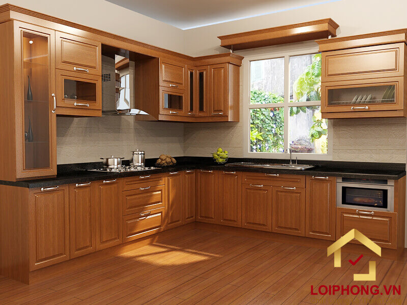 Với không gian phòng bếp chắc chắn việc đặt một chiếc tủ gỗ là điều rất cần thiết. Các gia chủ luôn đánh giá cao về độ bền, đẹp và tiện ích mà tủ này mang lại. Dù là tủ bếp gỗ hình chữ L, tủ hình chữ U, tủ hình chữ G hay tủ bếp song song đều được thiết kế mang vẻ đẹp thanh lịch, với các đường nét vân gỗ tinh tế sẽ giúp không gian phòng bếp trở nên ấm cúng hơn.