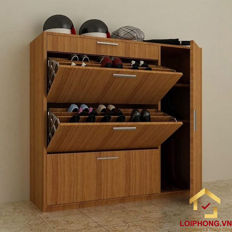 Thiết kế tủ đựng giày thường được chia thành nhiều ngăn. Nó sẽ giúp bạn tiết kiệm được không gian và để được nhiều giày mà không bị lẫn lộn vào nhau.