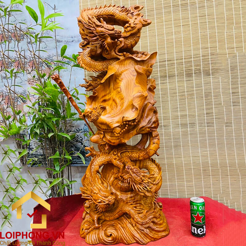 Tượng Đạt Ma Sư Tổ tam long 100x38x20 cm cao cấp bằng gỗ hương này phù hợp với mọi lứa tuổi gia chủ