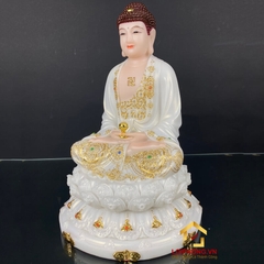 Tượng phật A Di Đà bằng đá trắng viền vàng cao 30 - 40 - 48 cm