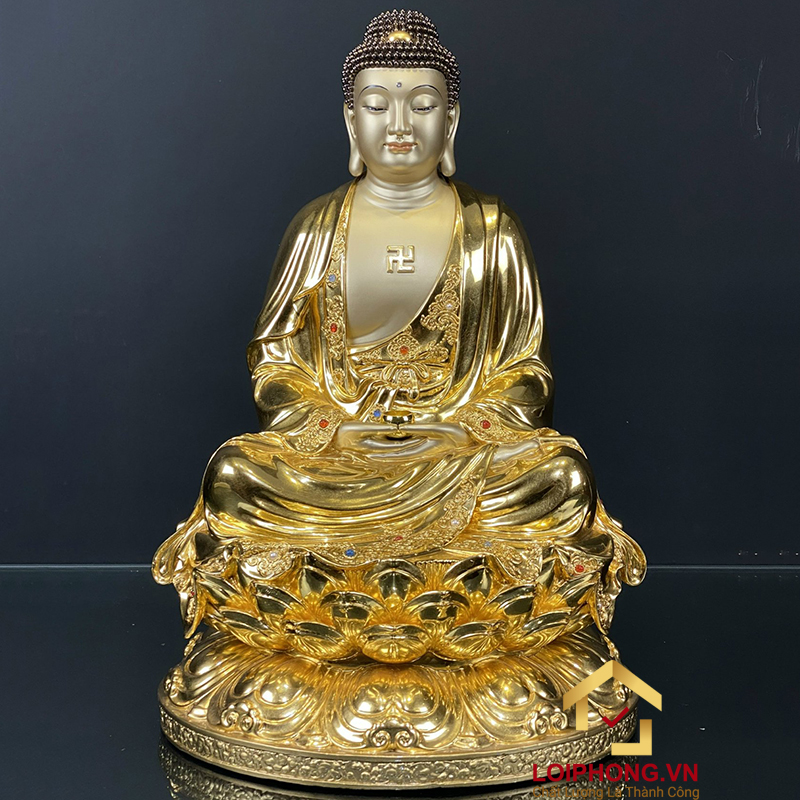 Tượng Phật A Di Đà cao cấp bằng đồng ngồi đài sen dát vàng này phù hợp với mọi lứa tuổi gia chủ