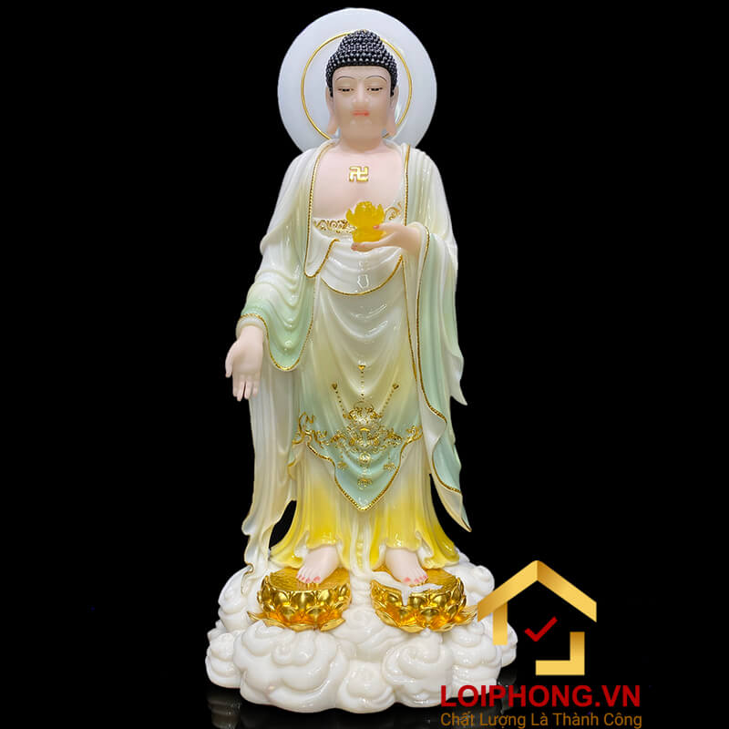 Tượng phật A Di Đà bột đá cẩm thạch đứng mây cao 40 – 48 – 65 – 90 cm