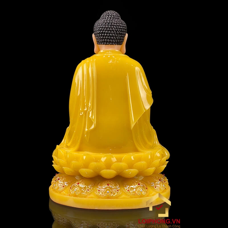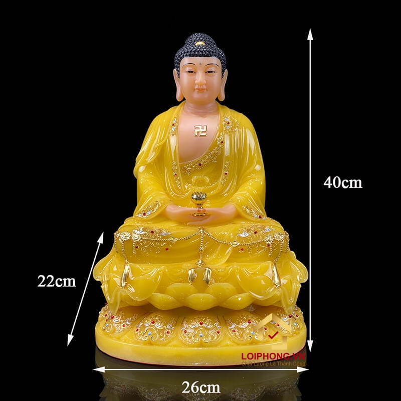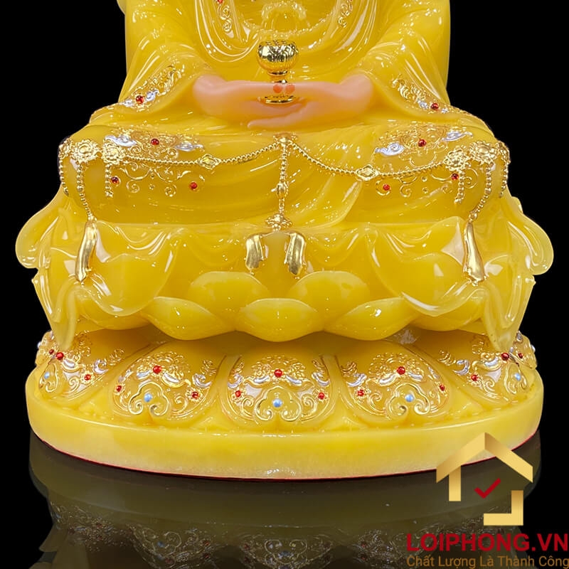 Tượng Phật A Di Đà Ngồi Đế Hoa Sen Bằng Bột Đá Thạch Anh Viền Vàng cao 30 - 65cm – Biểu Tượng Của Bình An Và Từ Bi
