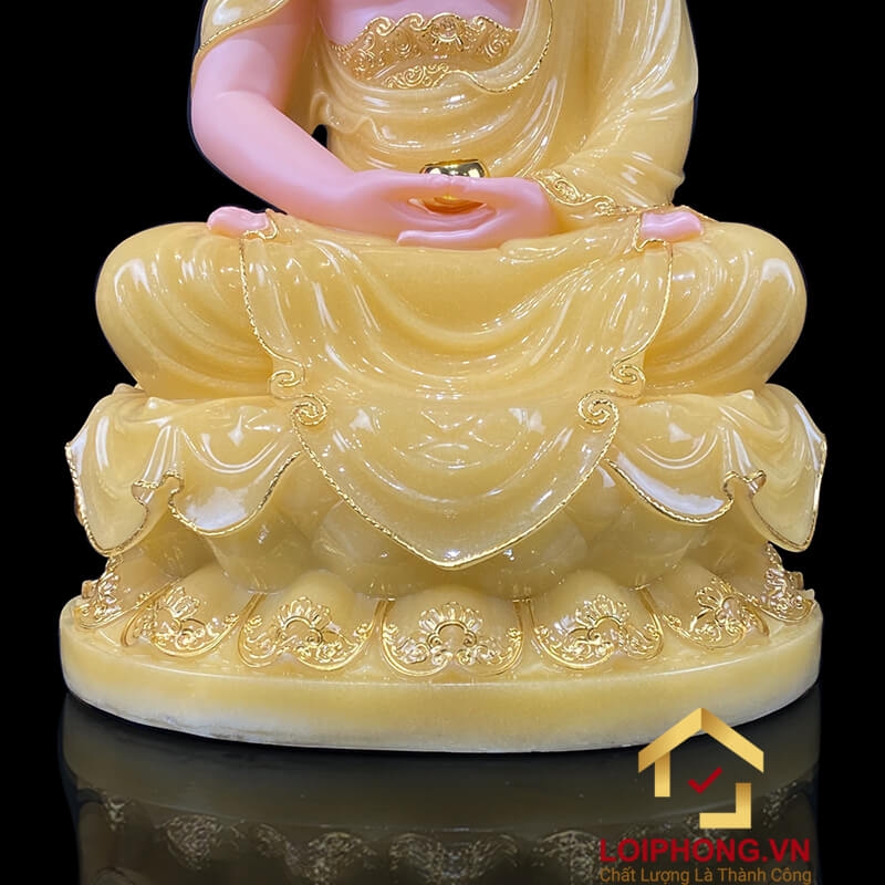 - Thiết kế tinh tế: Tượng Phật A Di Đà được thiết kế tinh xảo, tôn nghiêm, ngồi trên đế hoa sen mềm mại tạo cảm giác bình yên và tĩnh tại