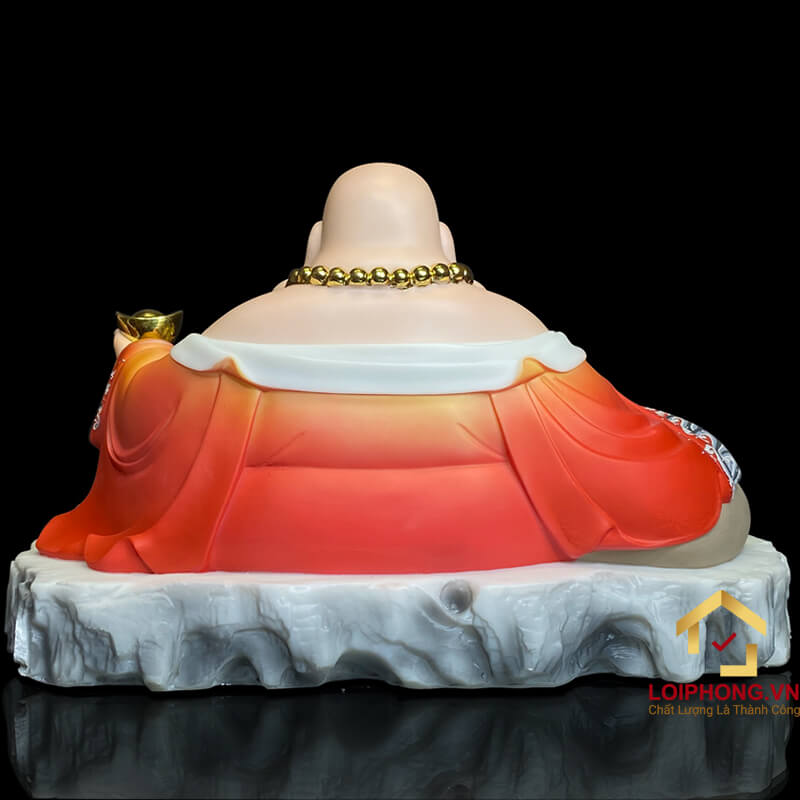 Tượng Phật Di Lặc bằng bột đá màu đỏ trắng dài 30 – 45 cm