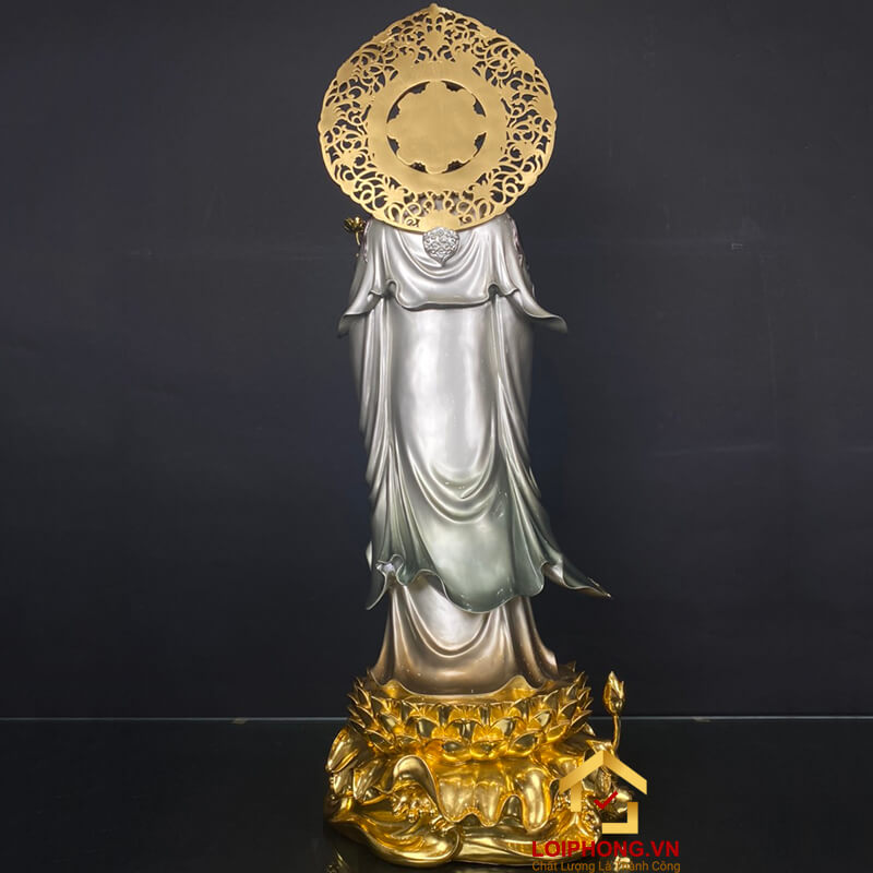 Tượng Phật Quan Âm đứng bằng đồng men cổ cao 48 - 65 - 90 - 106 cm mang hào quang và trí tuệ sâu rộng của phật Quan Âm chiếu rọi khắp thế gian, đến với tất thảy mọi chúng sinh