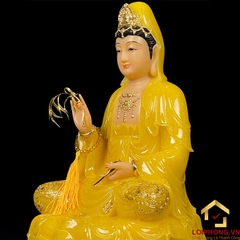 Tượng Phật Quan Âm Ngồi Đài Sen Bằng Bột Đá Thạch Anh Viền Vàng cao từ 30 cm đến 48 cm - Bình An, May Mắn Cho Mọi Nhà