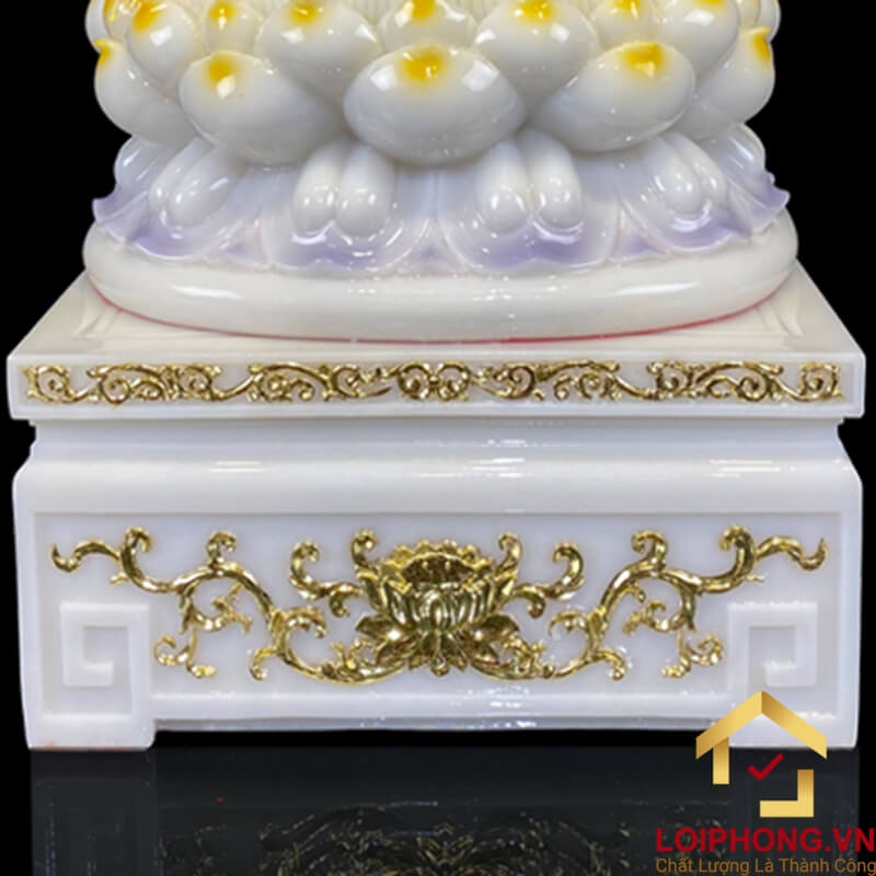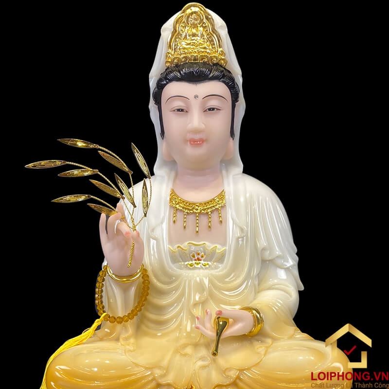 - Chất lượng đảm bảo: Tượng Phật Quan Âm được làm từ bột đá trắng cao cấp, sơn vàng sang trọng, đảm bảo độ bền và tính thẩm mỹ.