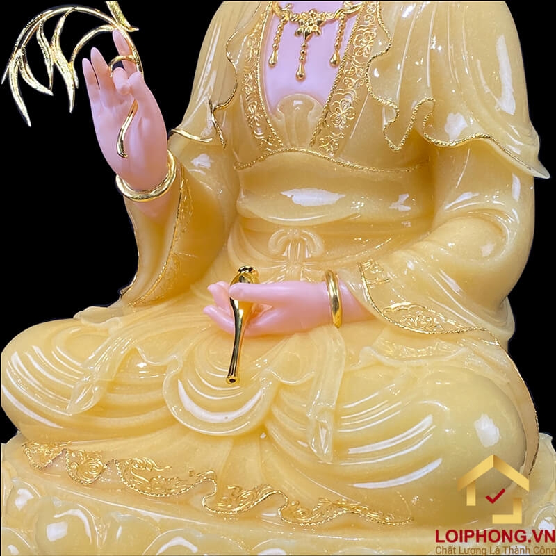 Tượng Phật Quan Âm Ngồi Đài Sen Bằng Bột Đá Thạch Anh Viền Vàng cao từ 30 cm đến 65 cm - Bình An, May Mắn Cho Mọi Nhà.