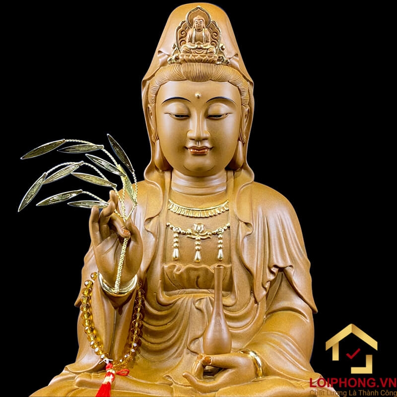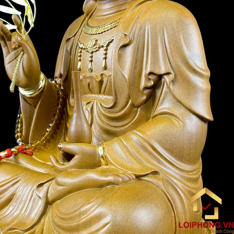 - Chất lượng đảm bảo: Tượng Phật Quan Âm được làm từ gỗ long não, đảm bảo độ bền và tính thẩm mỹ.