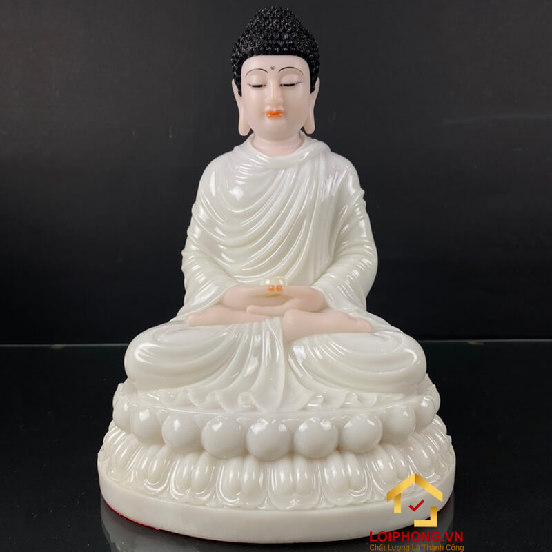 Tượng phật Thích Ca ngồi bằng bột đá màu trắng cao 30 – 40 – 48 - 65 cm
