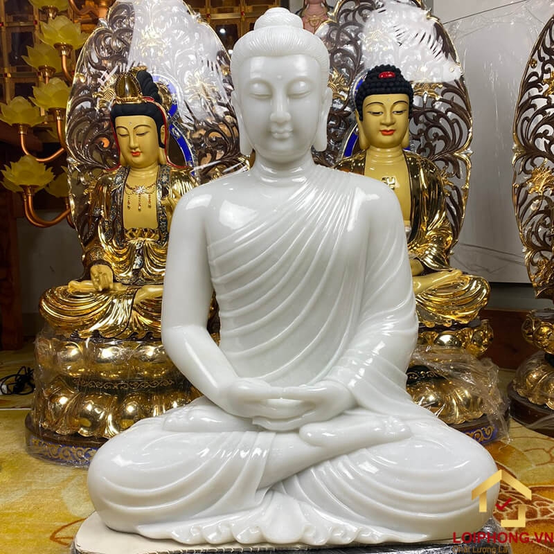 Tượng Phật Thích Ca Tĩnh Tâm Bằng Ngọc Hán Bạch kích thước 75cm x 50cm x 30cm – Biểu Tượng Của Trí Tuệ Và Thanh Tịnh