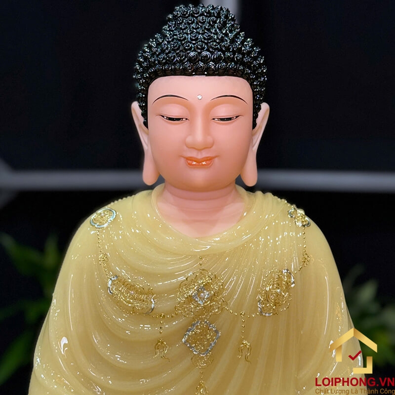 - Thiết kế tinh tế: Tượng Phật Thích Ca với hình dáng ngồi tĩnh tâm uy nghiêm, thể hiện thần thái an nhiên, từ bi, sự giác ngộ,trí tuệ, mang lại vẻ đẹp trang nghiêm cho không gian thờ cúng.