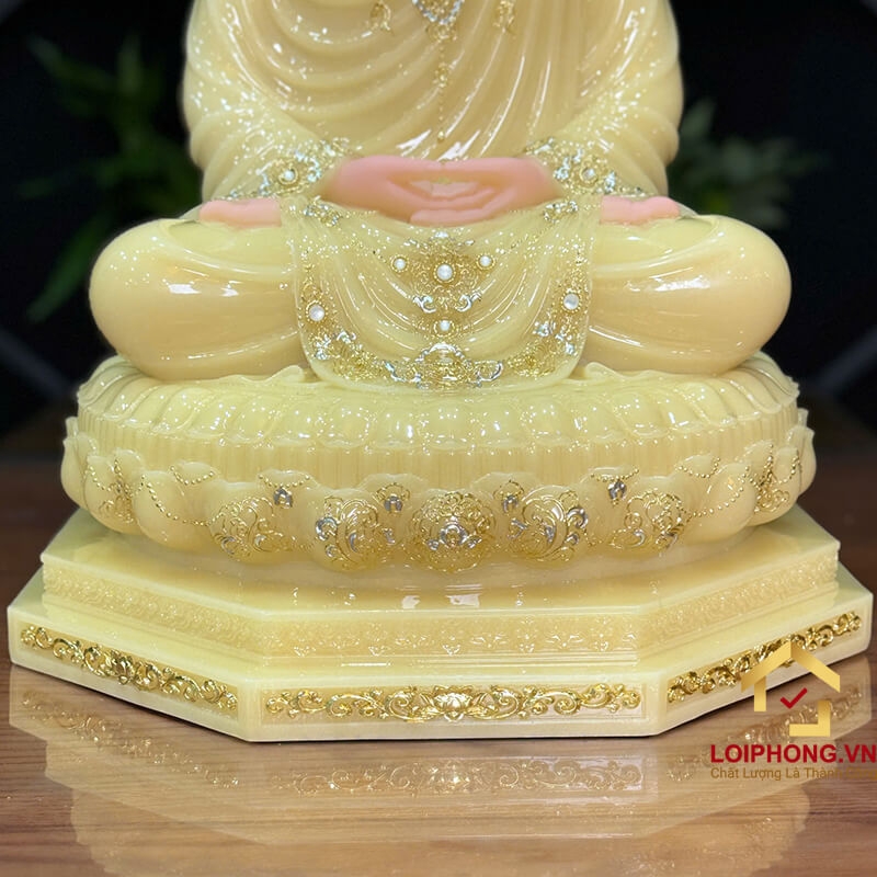 - Đài sen 8 cạnh vững chắc: Biểu trưng cho Bát Chánh Đạo, đảm bảo sự bền vững, tạo lên vẻ uy nghi cho bức tượng.