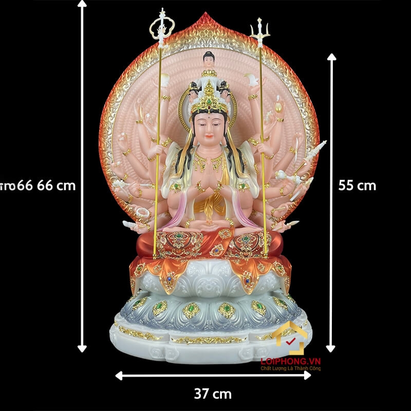Tượng Thiên Thủ Thiên Nhãn Bằng Bột Đá Sơn Màu Vẽ Gấm cao 30 - 48cm – Vật Phẩm Thờ Cúng Linh Thiêng