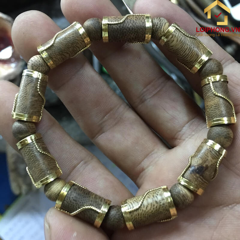 Vòng Trầm bọc vàng là chuỗi vòng tay làm từ gỗ Trầm được bọc thêm vàng ở hai đầu